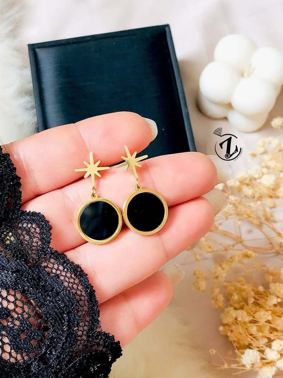 حلق بريمه دائره Circle ⚪️🟡 استانلس بيور اسود✨جولد ز