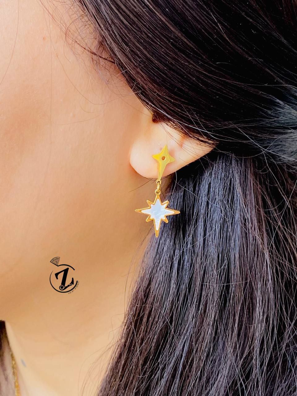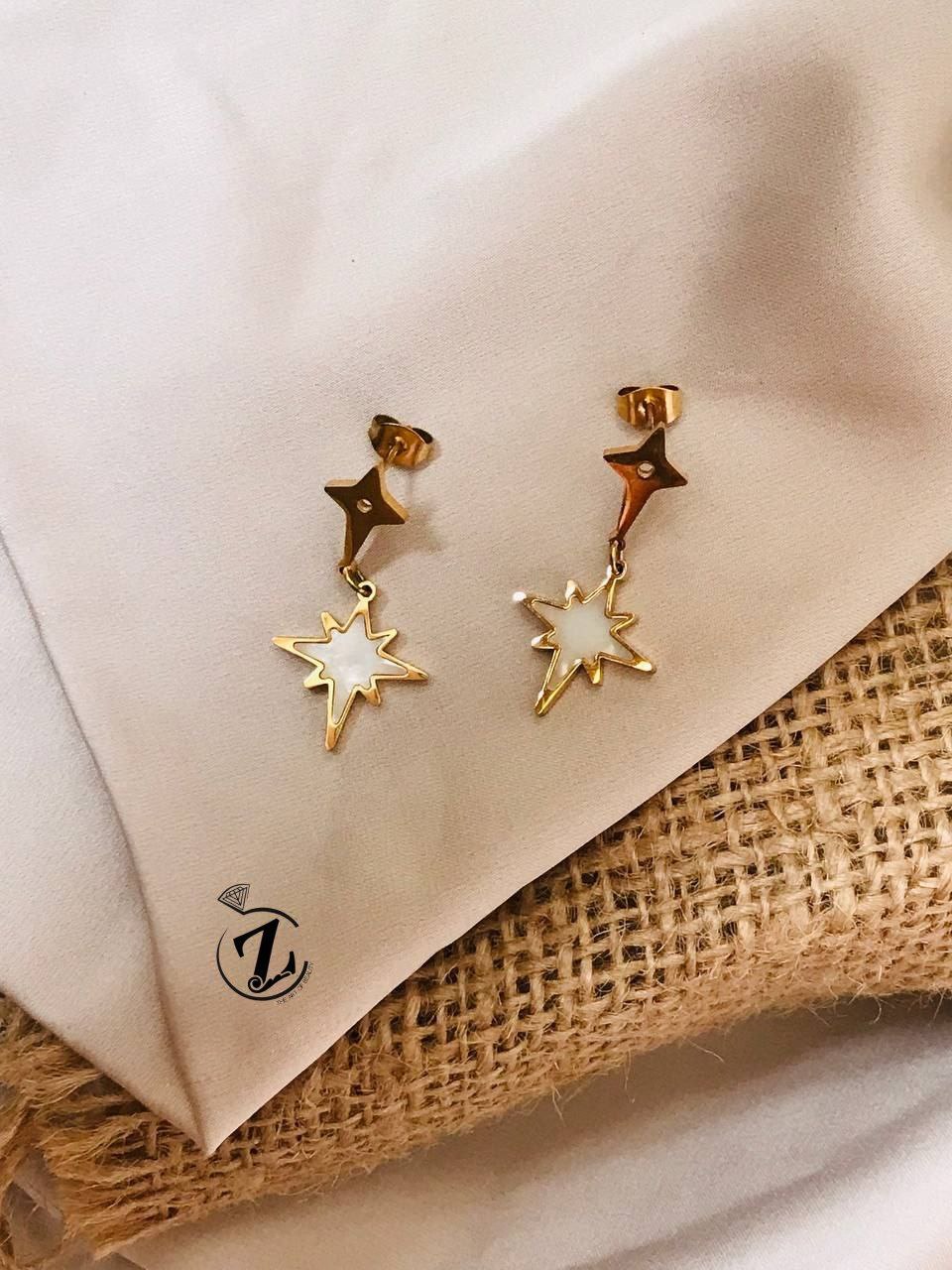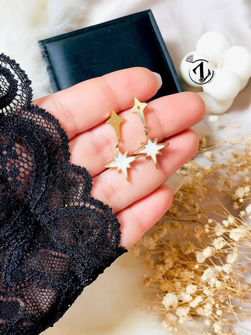 حلق بريمه Double Stars استانلس بيور ماربل ابيض✨جولد ز