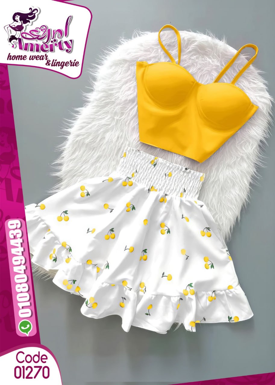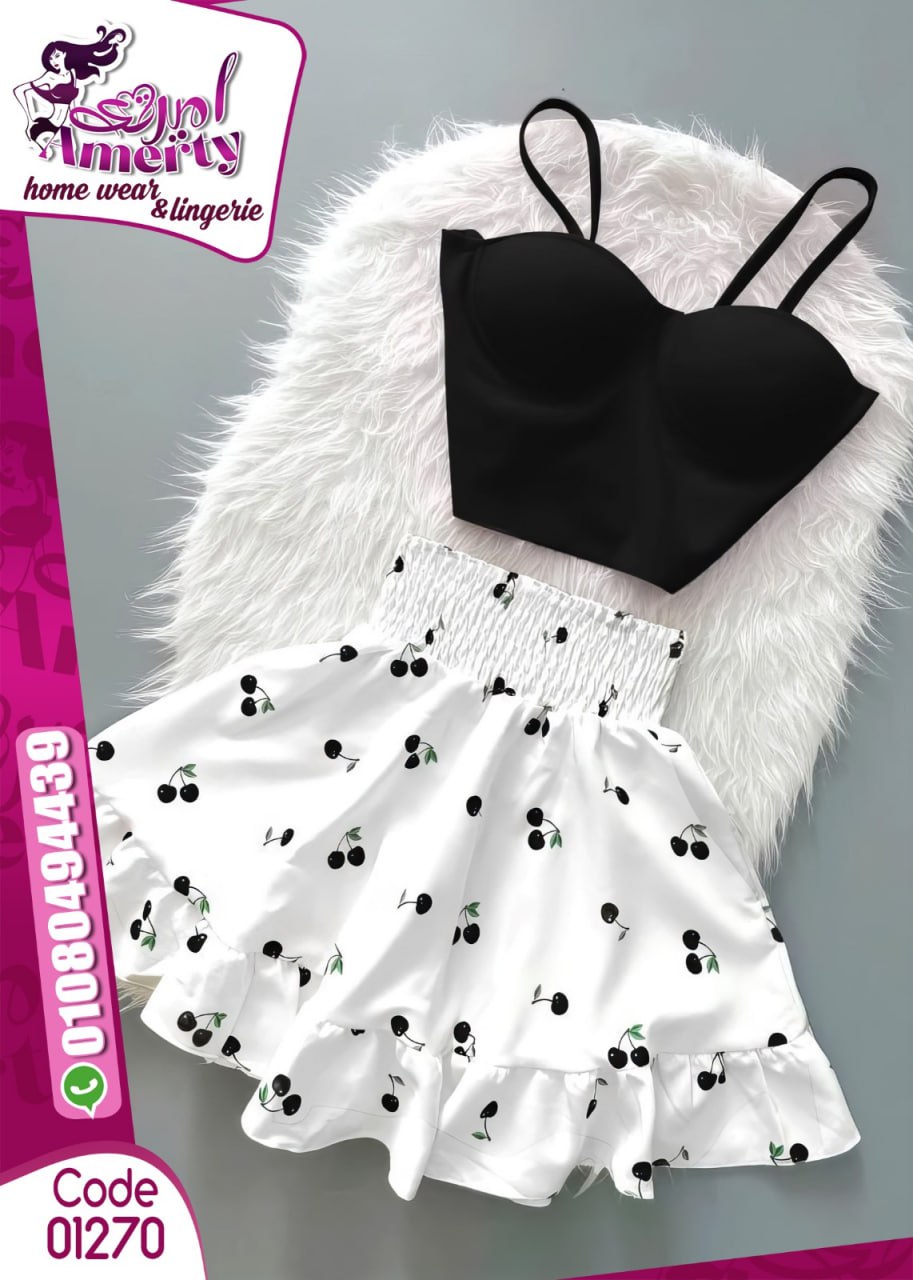 🛌 الموديل: توب + جيبة قصيرة أنثوي